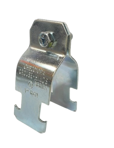 Abrazadera par unicanal de 1″ ( 25 mm) galvanizado para la fijacion de tubos en los prefiles de unicanal, se coloca de manera óptima en los perfiles.