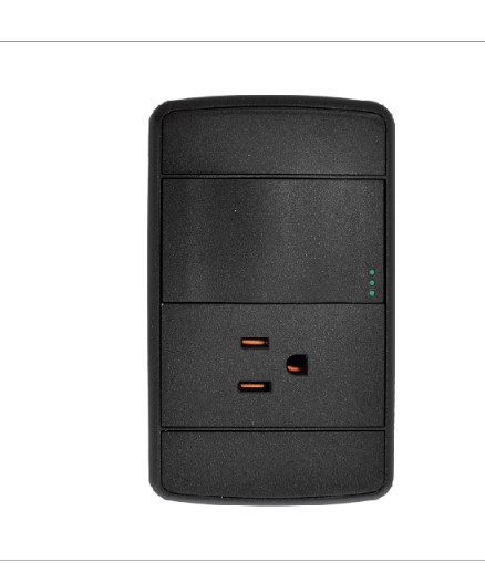 Placa armada con apagador de escalera y contacto en terminado color negro