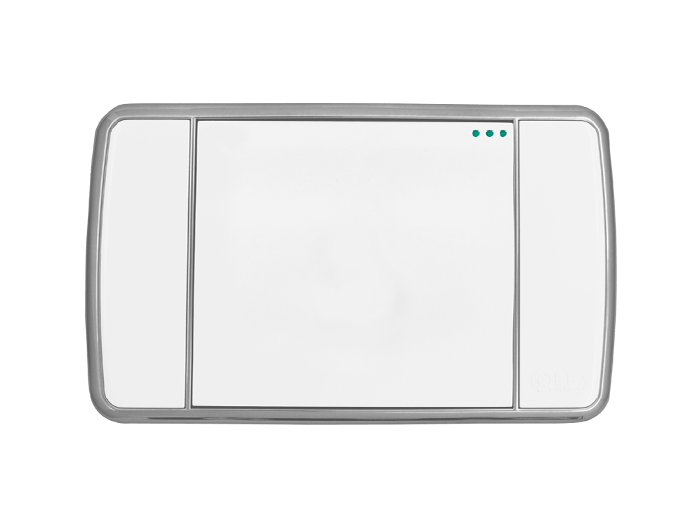 Placa armada con apagador de escalera, blanco plata. Linea: BPA Electric.