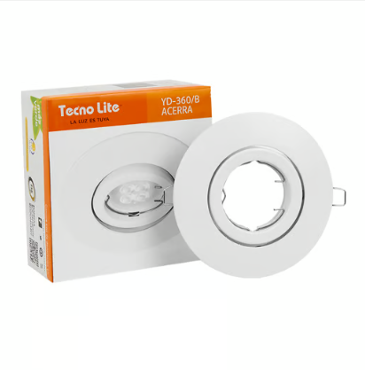 Base dirigible ACERRA para foco de led mr16, potencia maxima de 6w, base Gx5.3 compatible con focos atenuables, 100-240v, medidas: 117 x 121 x 121 mm, terminado color blanco