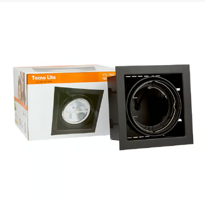 Base cuadrada dirigible NANCHONG para empotrar compatible con focos AR111, (atenuables, inteligentes) potencia maxima de 15w medidas: 100 x 176 x 176 mm, terminado en color negro mate