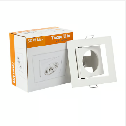 Base cuadrada dirigible ANZIO. compatible con foco MR16, base Gx5.3 potencia maxima de 6w compatible con foco atenuable, 100-240v, medidas: 55 x 130 x 130 mm, terminado color blanco