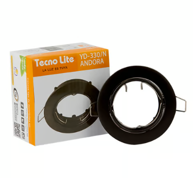 Base redonda ADORA dirigible color negra para base MR16 maxima potencia de 6w, compatible con focos atenuables e inteligentes, de 100-240v, medidas: 21 x 82 x 82 mm