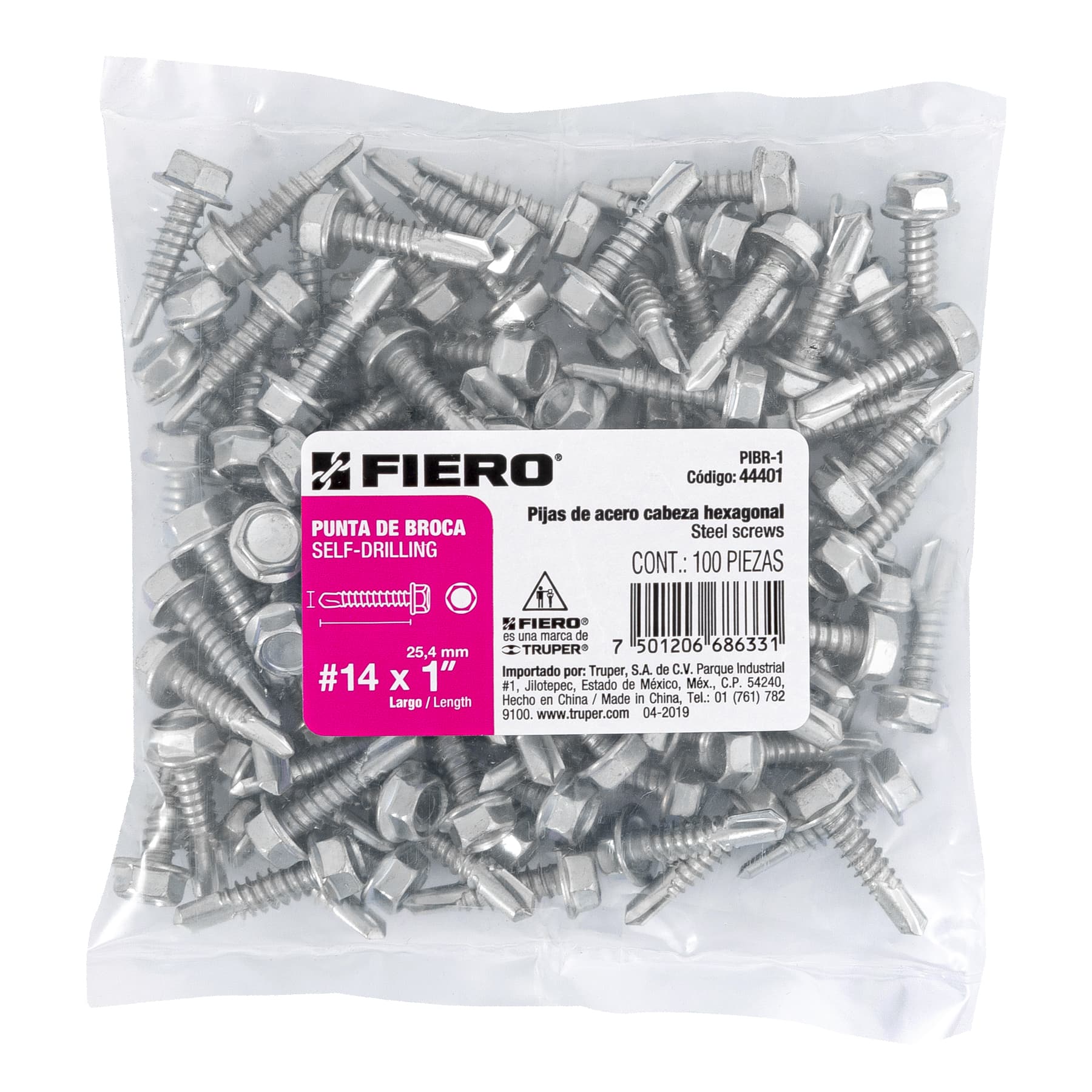 BOLSA CON 100 PIJAS CABEZA HEXAGONAL P/BROCA 1″