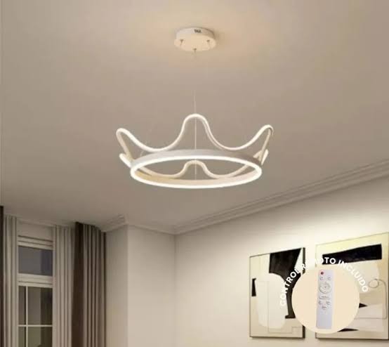 Lampara colgante tipo corona. Color blanco. 3 Tonos de Luz Función Luz de Noche Atenuable Control Remoto