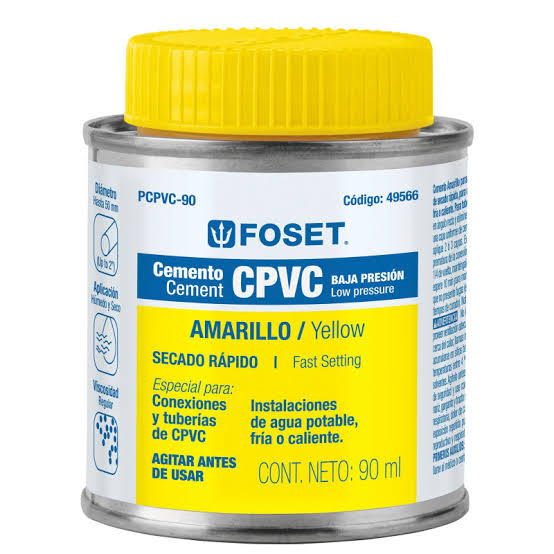Cemento para PVC. Baja presión.] Amarillo. Marca: Foset.