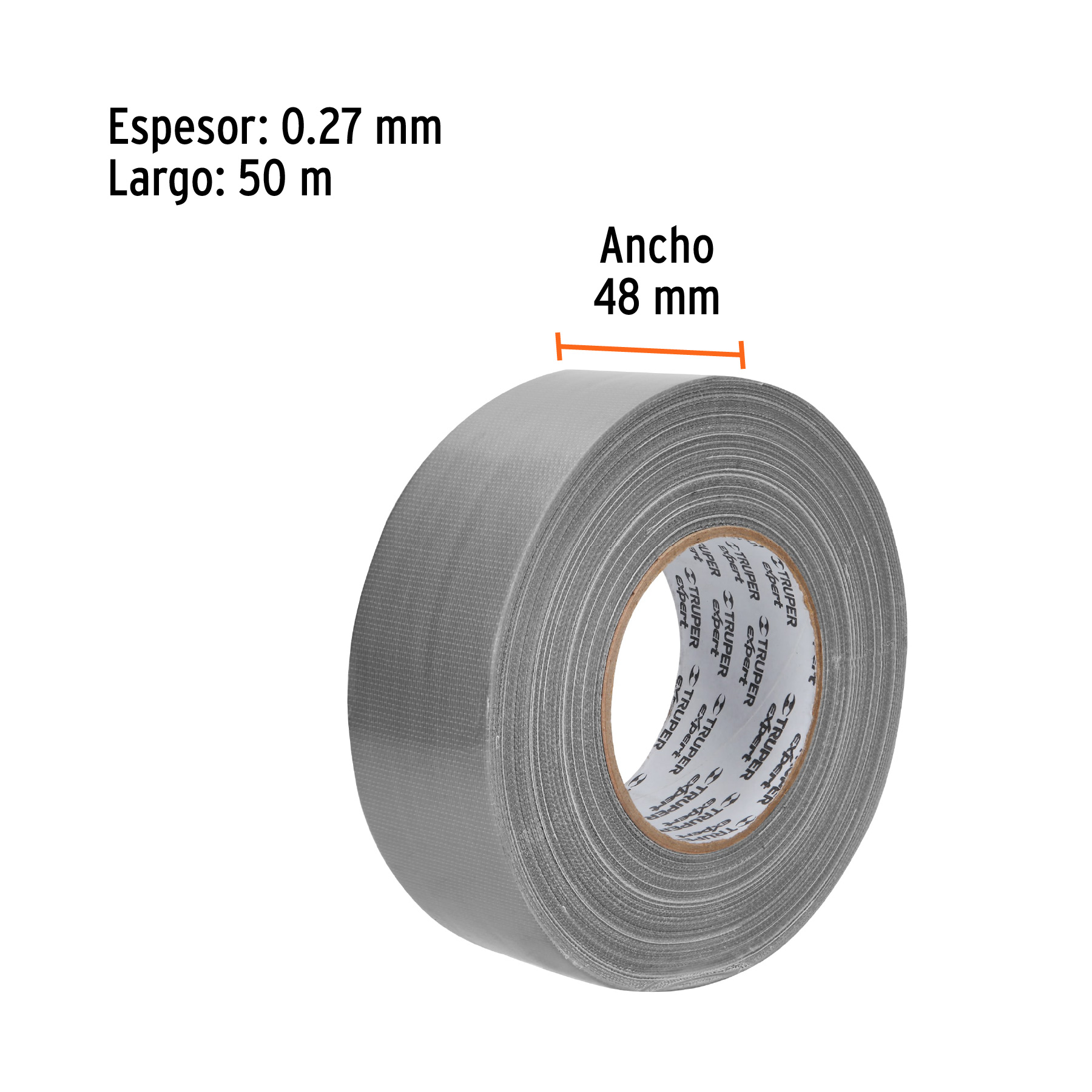 Cinta para ducto adhesivo de caucho natural de mayor adherencia que hot melt, resistente a la humedad, al desgaste y a la abrasion, se adampar a las superficies irregulares, reforzada con malla de algodón, medidas de espesor: 0.27 mm, largo 50 mts, ancho 48 mm