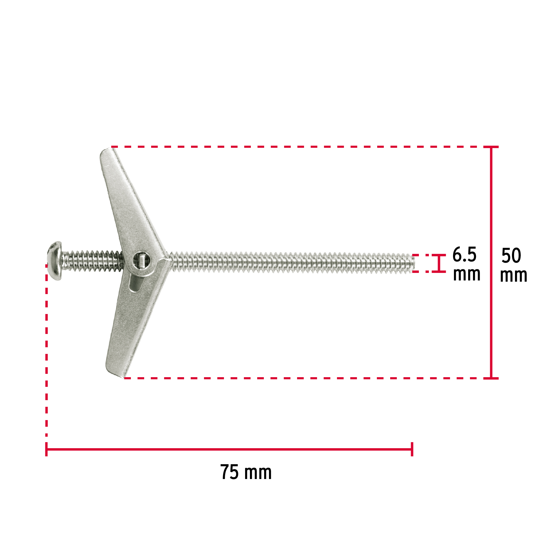 Empaque con 4 sujetadores tipo mariposa galvanizados de 3/16″ x 3″, sujetador montado con tornillo para fijar en panel de yeso, aglomerados de madera, block o ladrillo hueco.