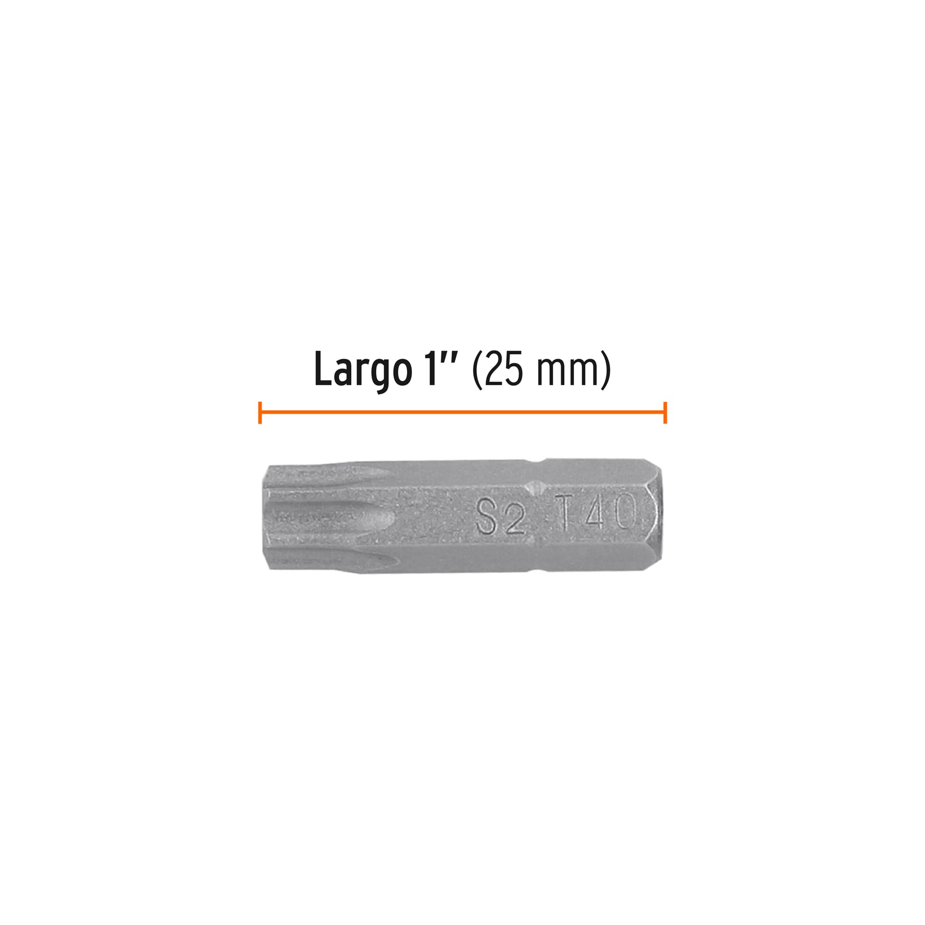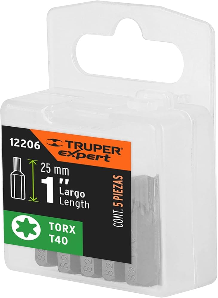 Estuche con 5 puntas torx T40 fabricadas en acero S2, 2X más resistentes al desgaste que las de acero al cromo vanadio, ideal para desarmador electrico o manual y taladro,punta T40, largo: 1″ (25mm), zanco: 1/4″(6.5mm), estuche reutilizable
