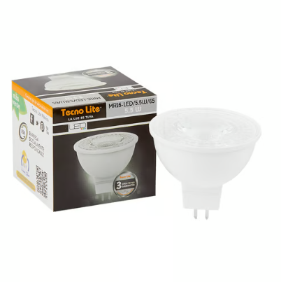 Foco de led entrada MR16 de 5.5w en luz blanca (6500K) no atenuable de 100-240v, no es compatible con sensores IR, sensores de proximidad ni equipos con fotocelda, color blanco