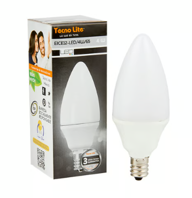 Foco de led tipo vela de 4w entrada e12 en luz blanca (6500K), no atenuable terminado en opalino blanco