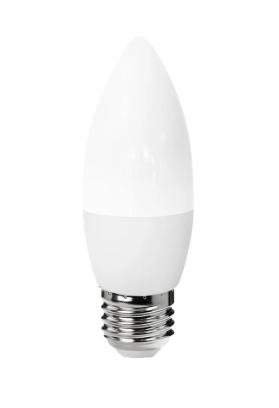 Foco de led tipo vela entrada e26 en luz calida (3500K) de 4w no atenuable, terminando en plastico color blanco