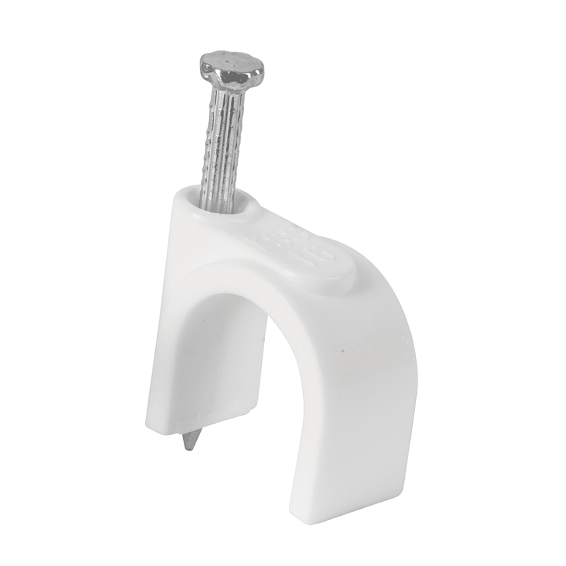 Bolsa con 20 grapas blancas de 16 mm para cable redondo.