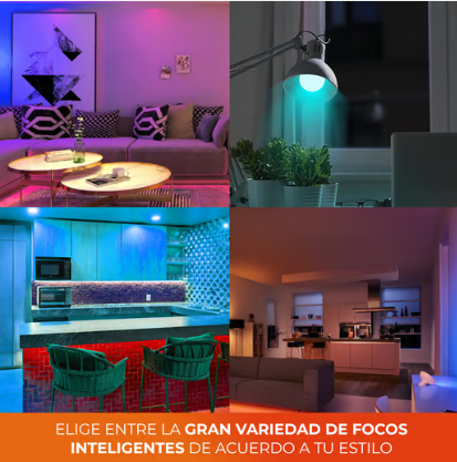 Paquete de 3 focos led inteligentes a19 WiFi 8w, luz RGB y luz blanca, Base E27, Compatible con app móvil y asistentes de voz como Alexa, Google Assistant y Atajos de Siri a 127v