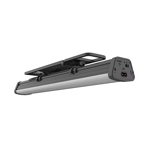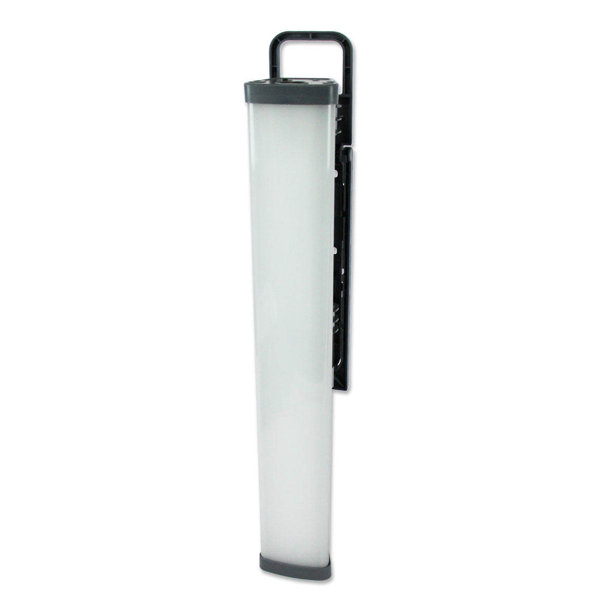 Lámpara de emergencia, de diversos modos de instalaciones (muro, techo, bandera). Con riel deslizable con diseño retractable, recargable.