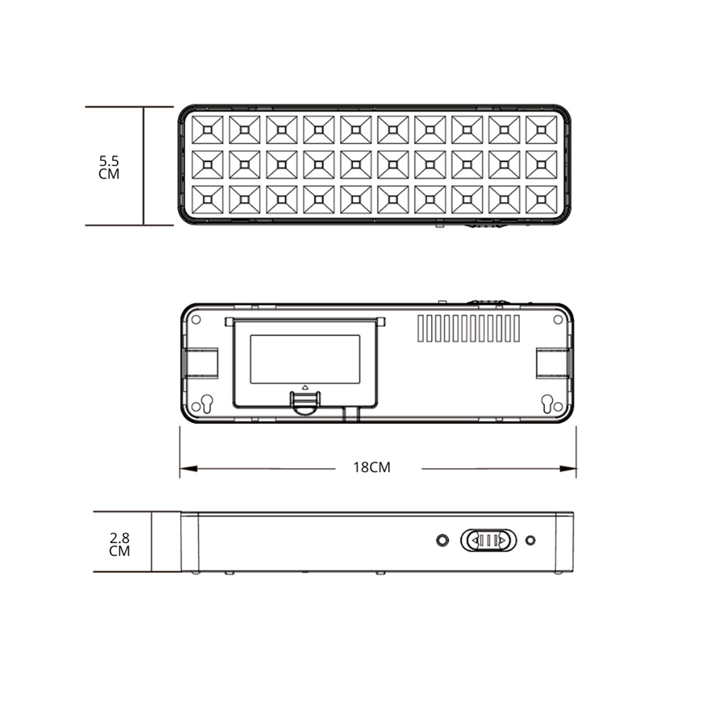 Lampara de Emergencia Rectangular 1.2 w max, 0.6w min.