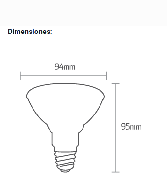 Lampara de led tipo PAR30, 9w luz de día 6500k, 100-140V~ 60Hz 9W 90mA 950lm.
