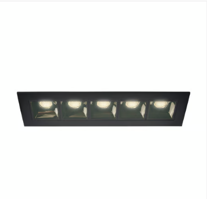 Luminaria rectangular LUCIDA IV 17w para empotrar con 5 fuentes de luz, en luz calida (3500K) medidas: 27 x 50 x 170 mm, 100-240v terminando en color negro mater