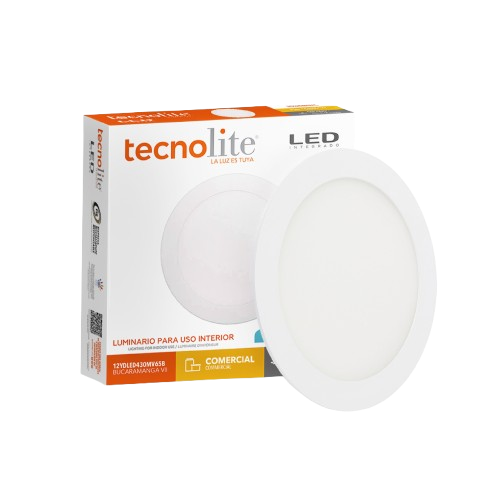 Luminaria circular BUCARAMANGA VII de 12w para empotar luz de dia (6500K) medidas: 20 x 171 x 171 mm, 100-240v terminado en color blanco opalino