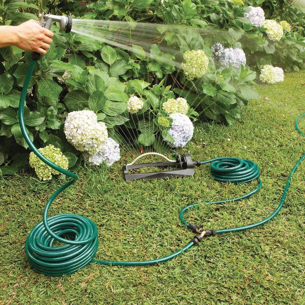 Manguera verde 1/2″ 3 capas 15m conexiones plásticas.