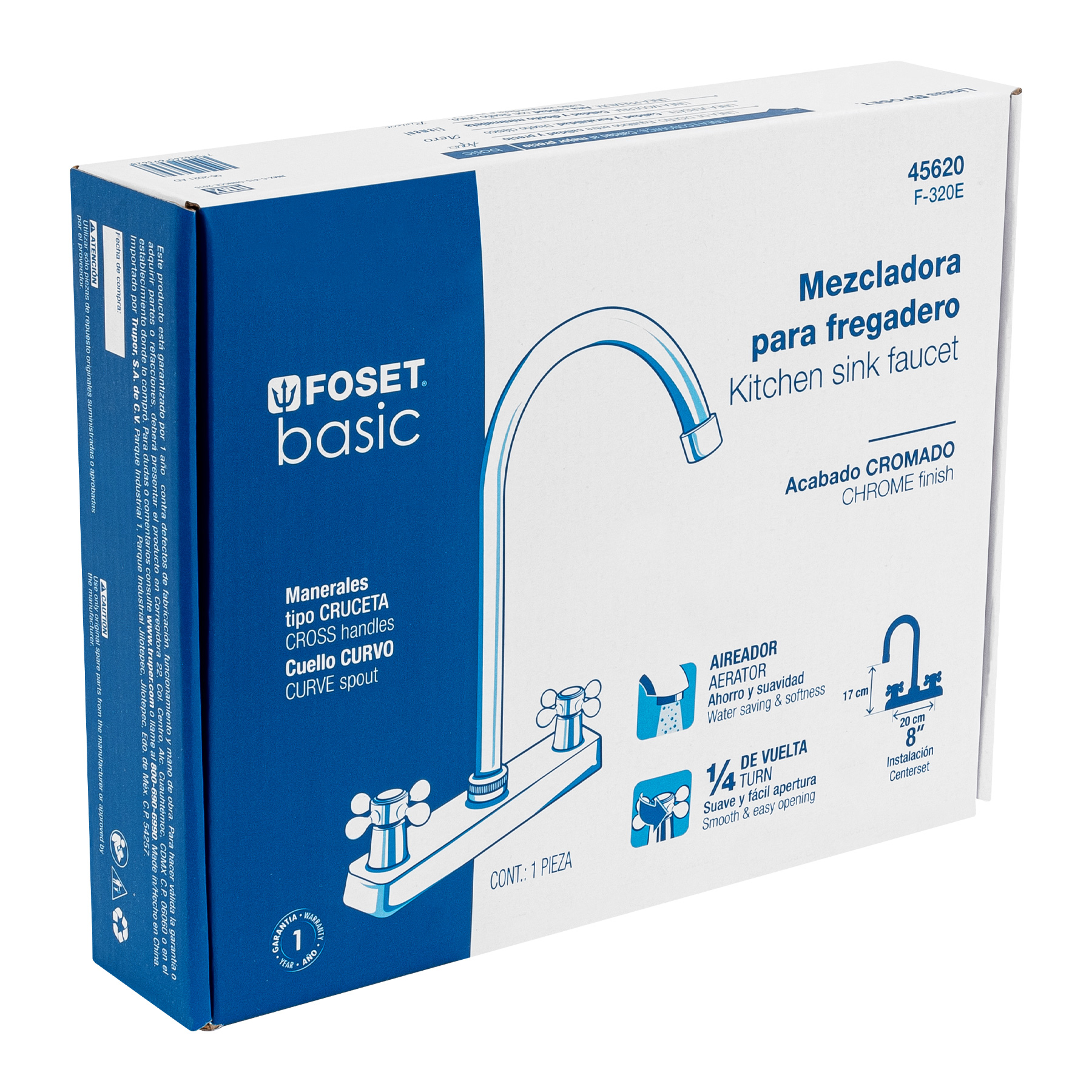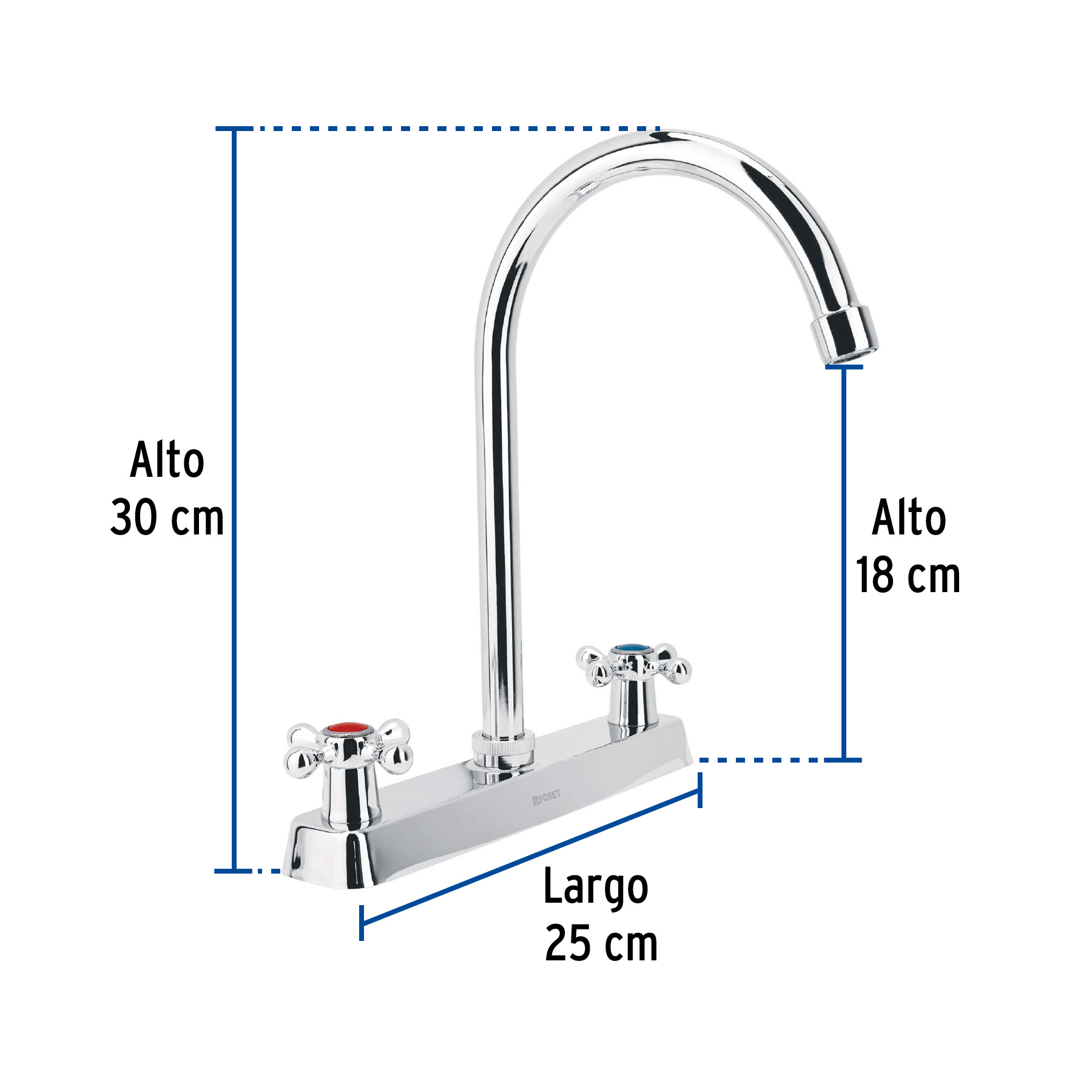 Mezcladora 8″ fregadero cromo, cuello curvo, cruceta.