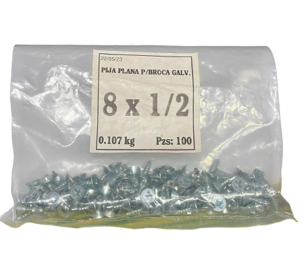 Pija plana galvanizada punta de broca de 8×1/2″, para soporte o fijacion.