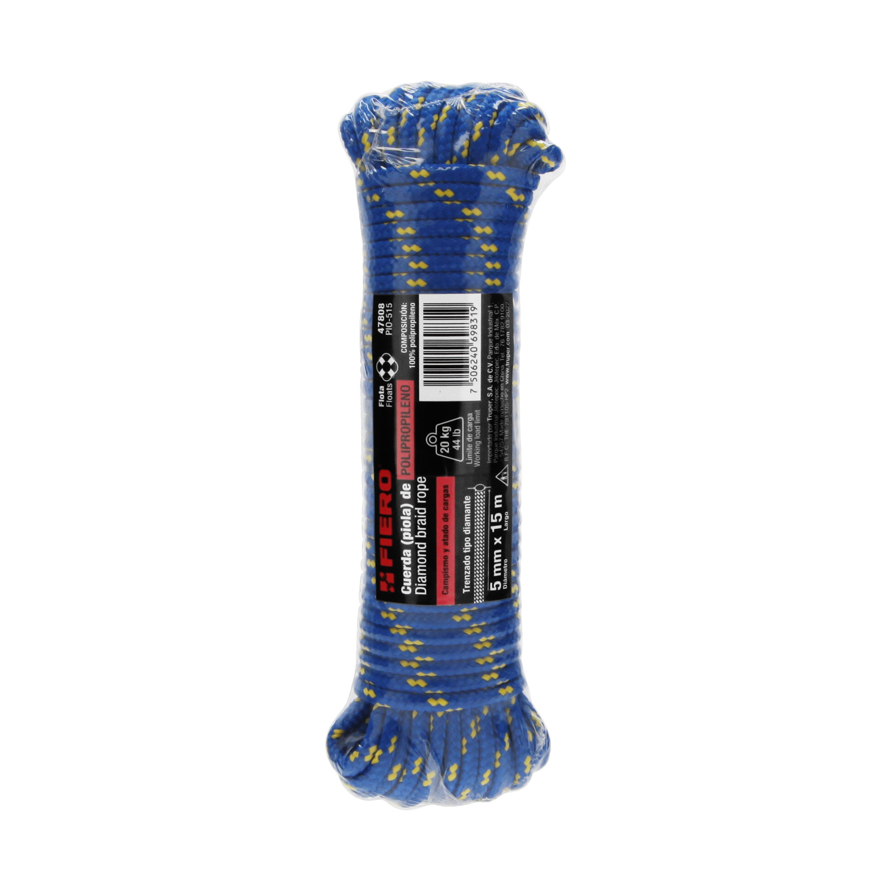 Piola de polipropileno trenzada multicolor de 5mm x 15mts, para campismo, pesca, sujeción de objetos, ideal para sujetar carpas y lonas.