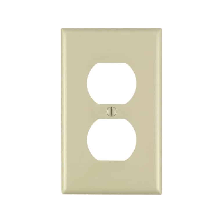 Placa simple de pared color marfil Leviton de plástico, útil para proteger un contacto circular, es para uso doméstico o en oficina. Está fabricada con plástico aislante que evita descargas o cortos circuitos y un acabado mate que proporciona una vista elegante al lugar en donde se coloque.