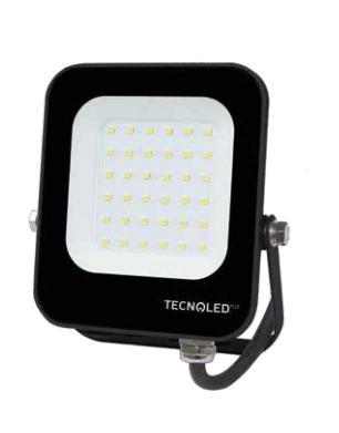 Reflector de led en luz calida (3500K) de 20w con IP66, dimensiones: 104*130*22 mm, con base de fijacion, terminado en aluminio color negro mate.