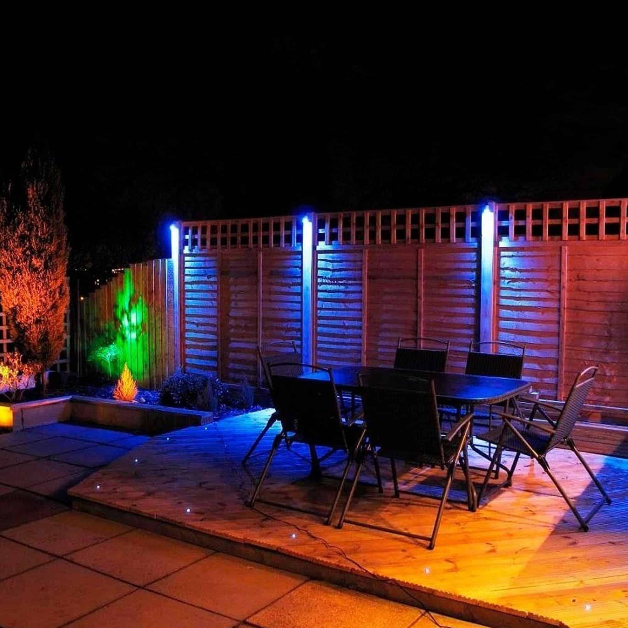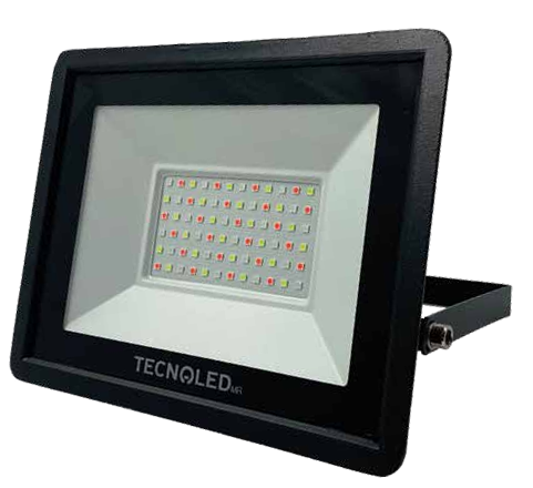 Reflector RGB, con control remoto para cambios rápidos de colores en secuencia rojo, verde, y azul.