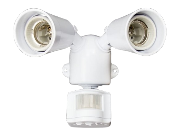 Sensor de movimiento con doble portalampara con entrada E-26 2 x 75w rango de deteccion de 2-11 mts con grado de 180º color blanco