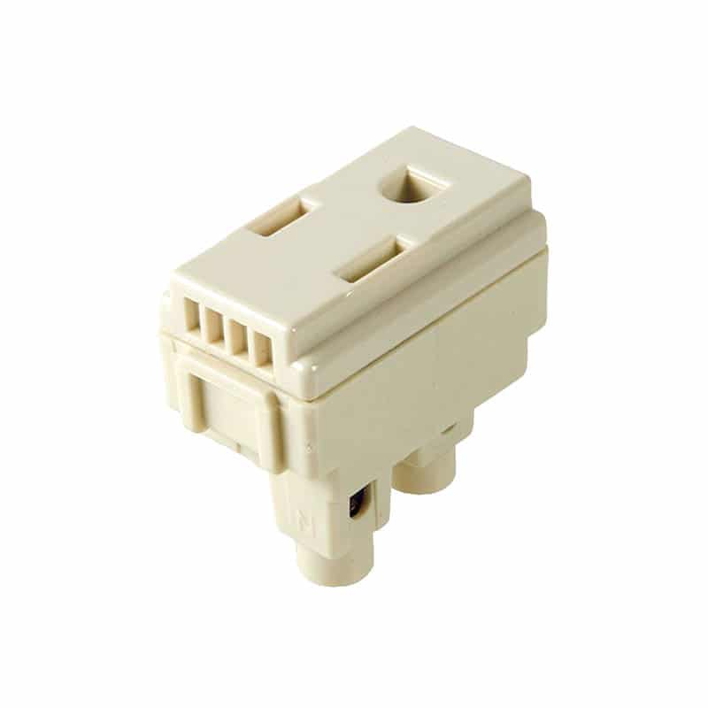 Tomacorriente polarizado con 2 polos de color blanco con 1 módulo.